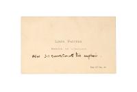 Visiting card with autograph note.