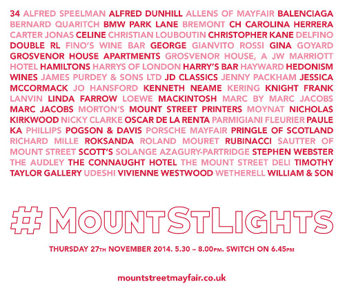 Nearby Mount Street’s Christmas lights are being switched on tomorrow night. We will be open late so please visit us for seasonal refreshments and a sparkling array of gift ideas for book-lovers. The world’s only male supermodel David Gandy will switch on the lights outside The Connaught Hotel around 6.45pm.